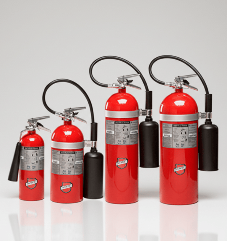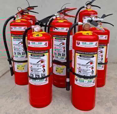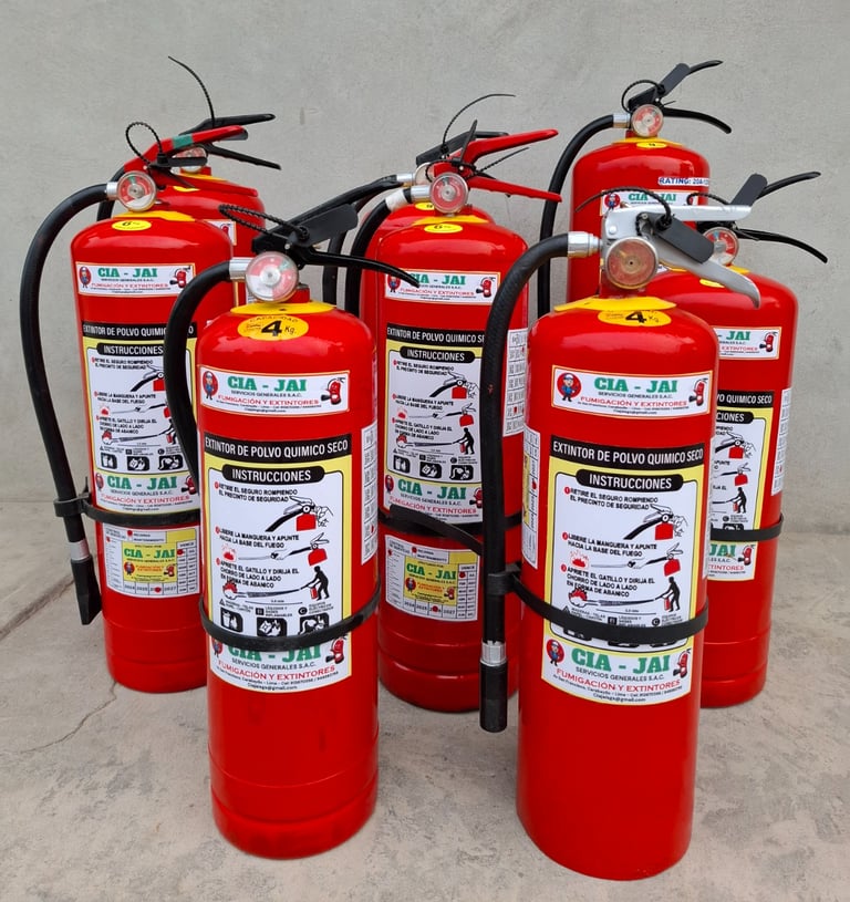 Extintores de polvo químico seco, recomendados para áreas de mayor riesgo como almacenes, plantas industriales y zonas de alta afluencia.