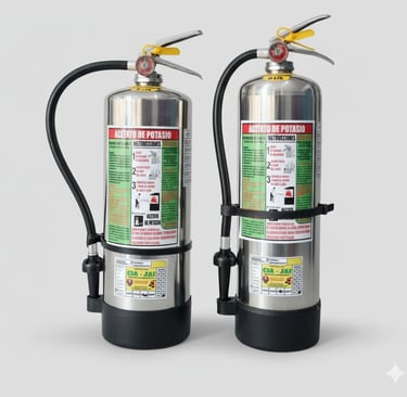 Diseñado específicamente para combatir incendios de Clase K, actúa mediante saponificación, formando una capa que enfría el fuego y evita su reencendido.