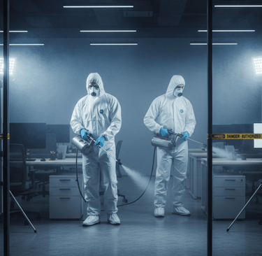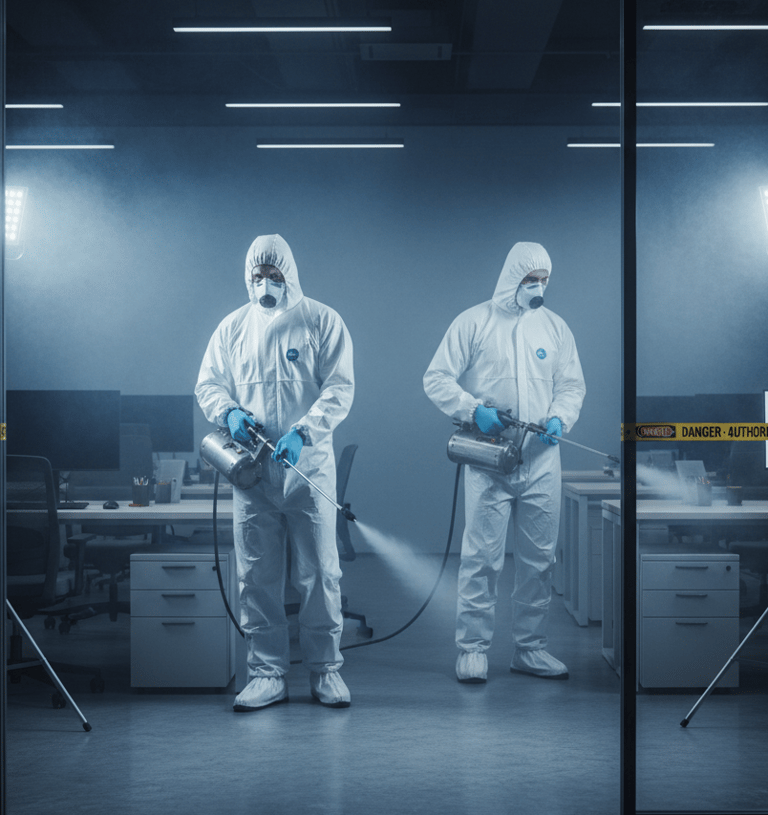 Proceso químico que elimina bacterias, virus y microorganismos patógenos, garantizando espacios limpios y saludables.